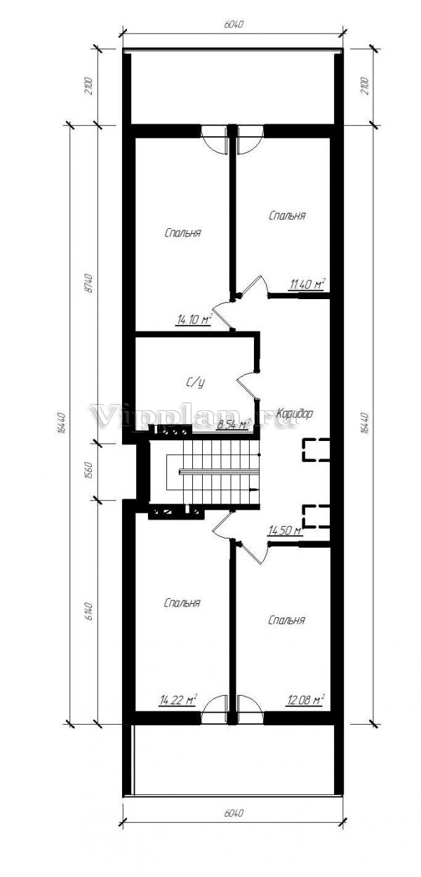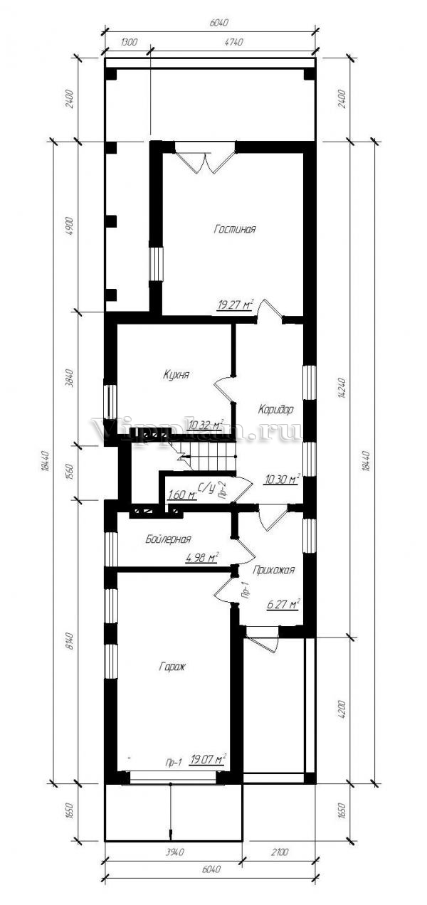 | Размеры дома: | 18.44м×6.04м |