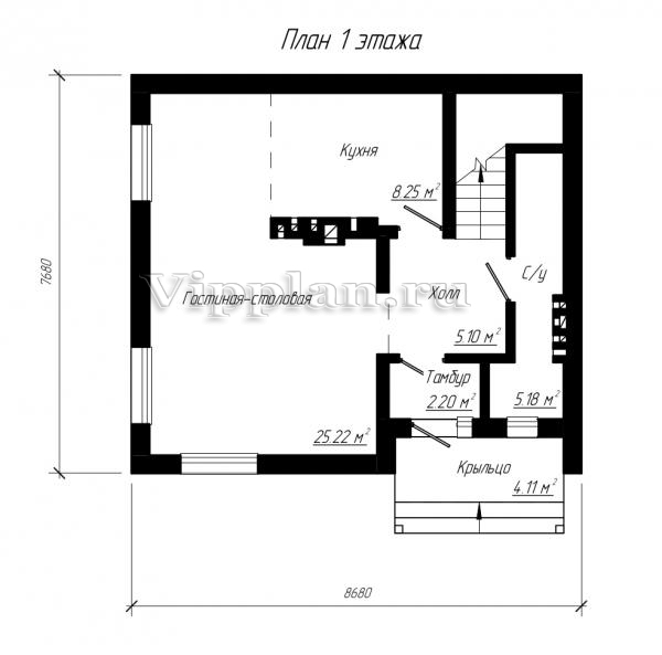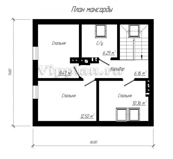 | Размеры дома: | 8.68м×8.84м |