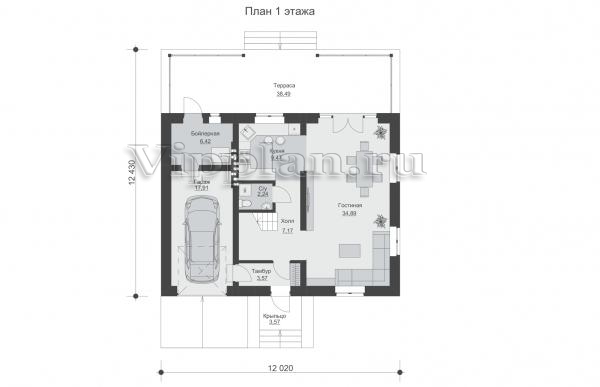 | Размеры дома: | 12.43м×12.02м |