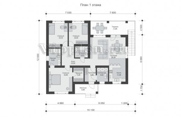 | Размеры дома: | 12.93м×15.13м |